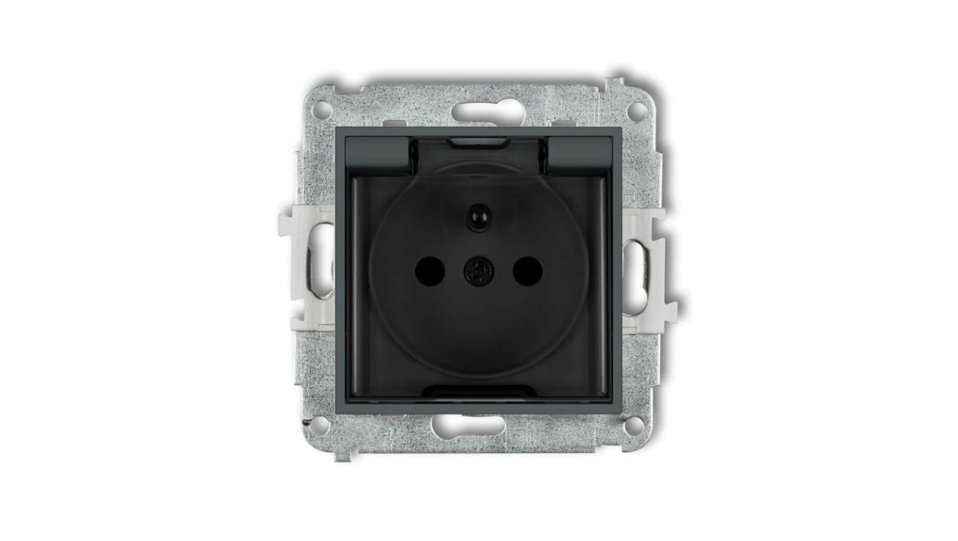MINI Gniazdo bryzgoszczelne z/u IP44 z przesłonami klapka dymna grafitowy mat 28MGPB-1zdp