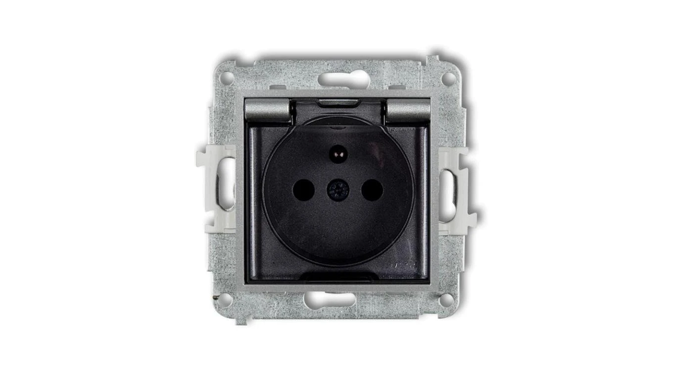 MINI Gniazdo bryzgoszczelne z/u IP44 z przesłonami klapka dymna srebrny metalik 7MGPB-1zdp