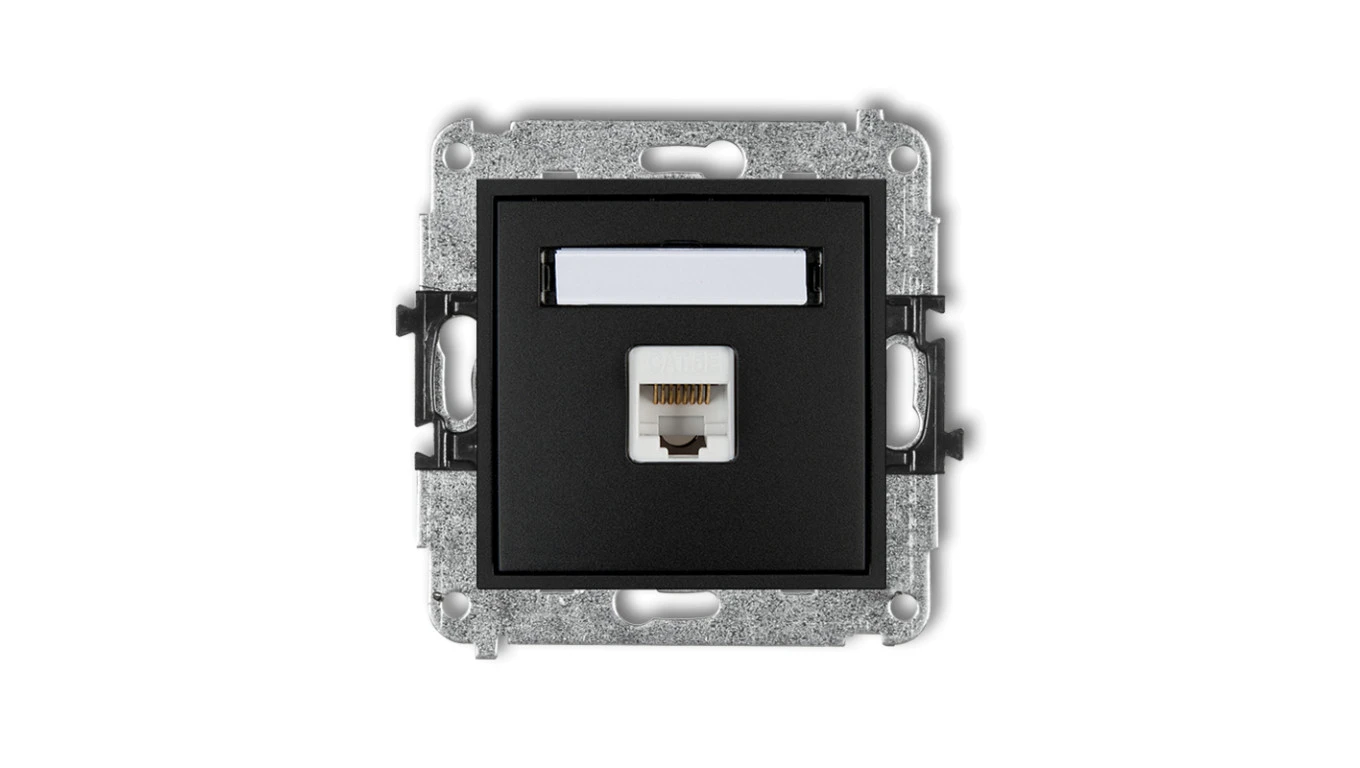 MINI Gniazdo komputerowe pojedyncze 1xRJ45 kat. 5e ekranowane 8-stykowy czarny mat 12MGK-1e