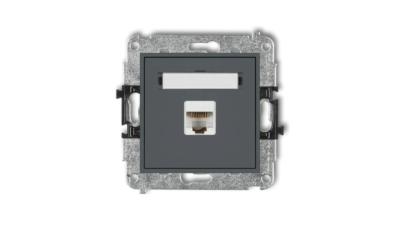 MINI Gniazdo komputerowe pojedyncze 1xRJ45 kat. 5e ekranowane 8-stykowy grafitowy mat 28MGK-1e