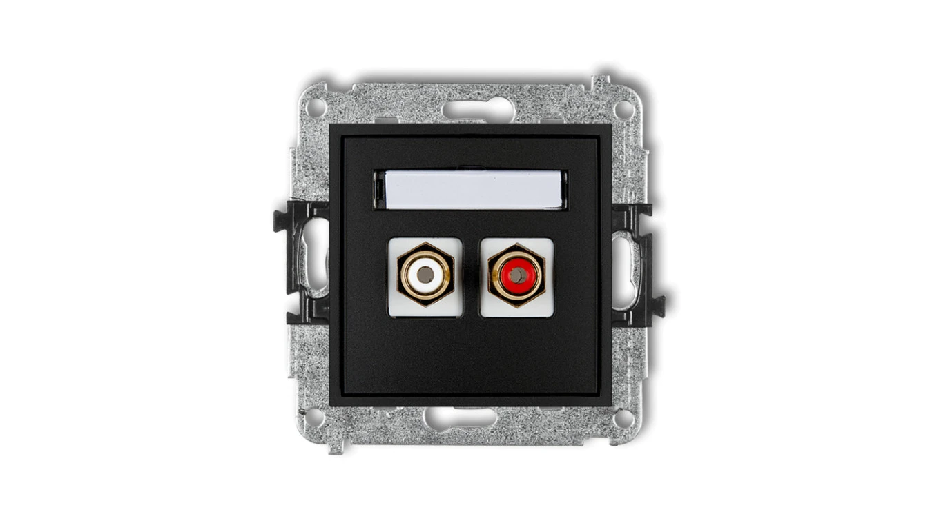 MINI Gniazdo podwójne RCA (typu cinch - biały i czerwony pozłacany) czarny mat 12MGRCA-2