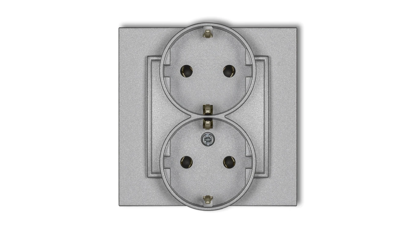 MINI Gniazdo podwójne z uziemieniem SCHUKO 2x(2P+Z) (bez przesłon torów prądowych) srebrny metalik 7MGP-2s