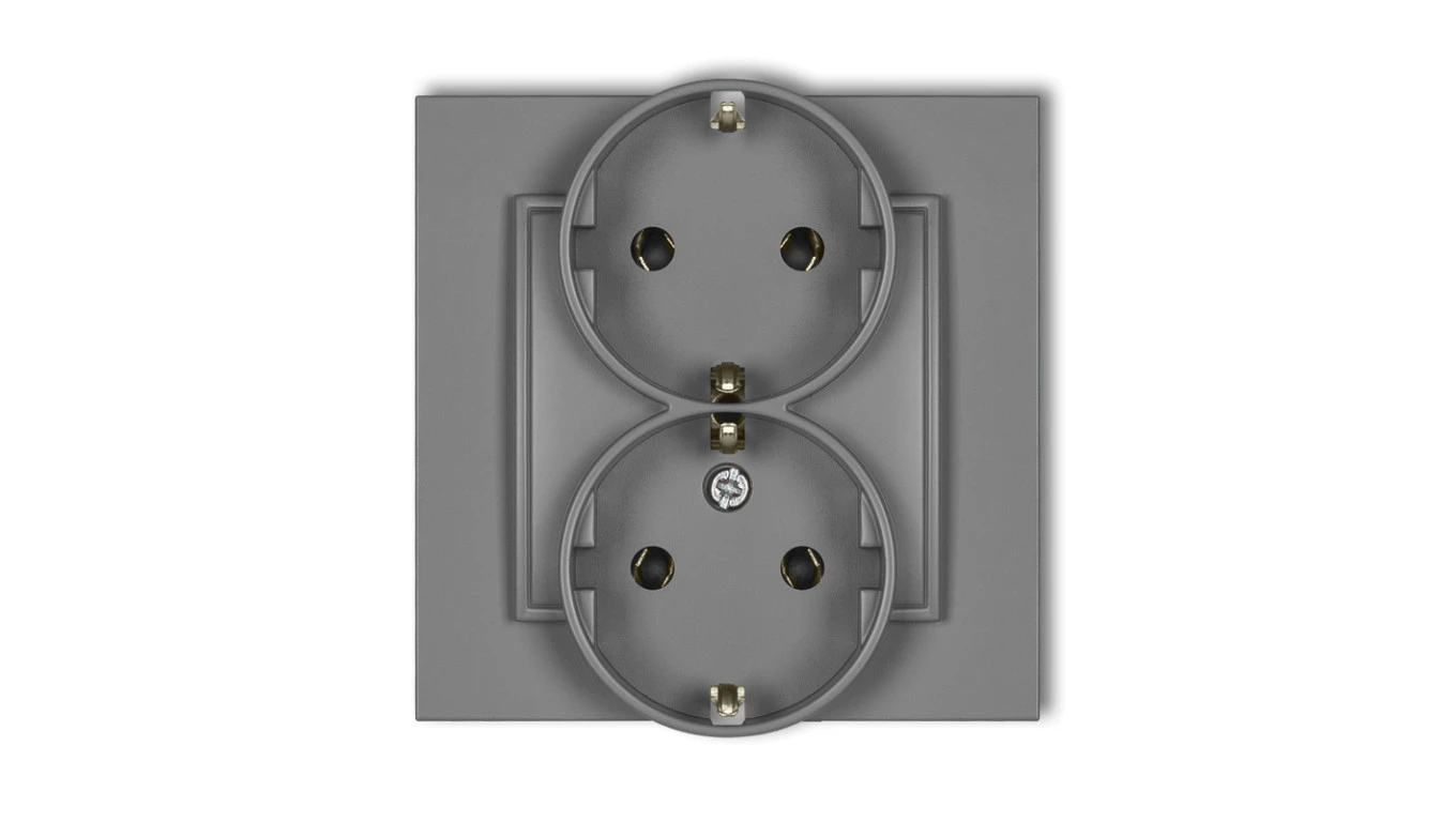 MINI Gniazdo podwójne z uziemieniem SCHUKO 2x(2P+Z) (bez przesłon torów prądowych) szary mat 27MGP-2s