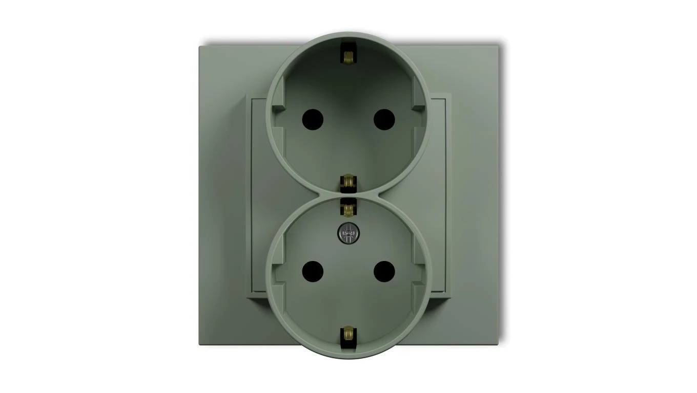 MINI Gniazdo podwójne z uziemieniem SCHUKO 2x(2P+Z) (przesłony torów prądowych) szałwiowy 61MGP-2sp