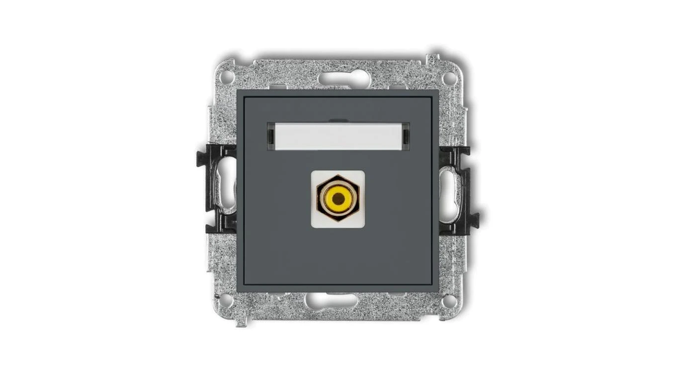MINI Gniazdo pojedyncze RCA (typu cinch - żółty pozłacany) grafitowy mat 28MGRCA-1