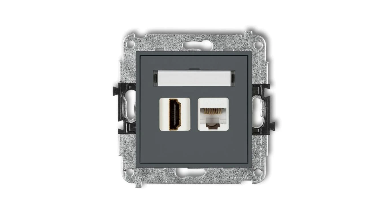 MINI Gniazdo pojedynczego HDMI + gniazdo komputerowe 1xRJ45 kat.5e 8-stykowy grafitowy mat 28MGHK