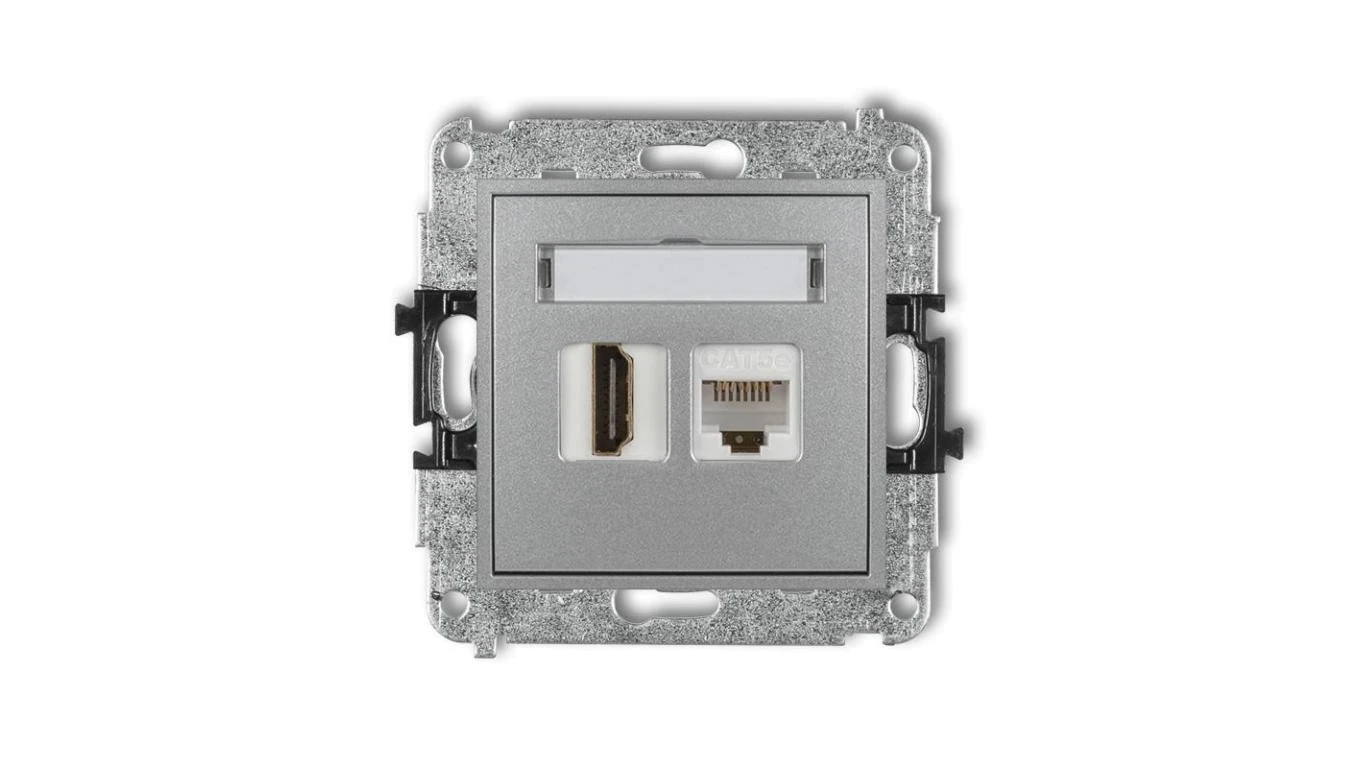 MINI Gniazdo telefoniczne RJ11 + gniazdo komputerowe RJ45 kat. 5e 8-stykowy beznarzędziowy srebrny metalik 7MGTK