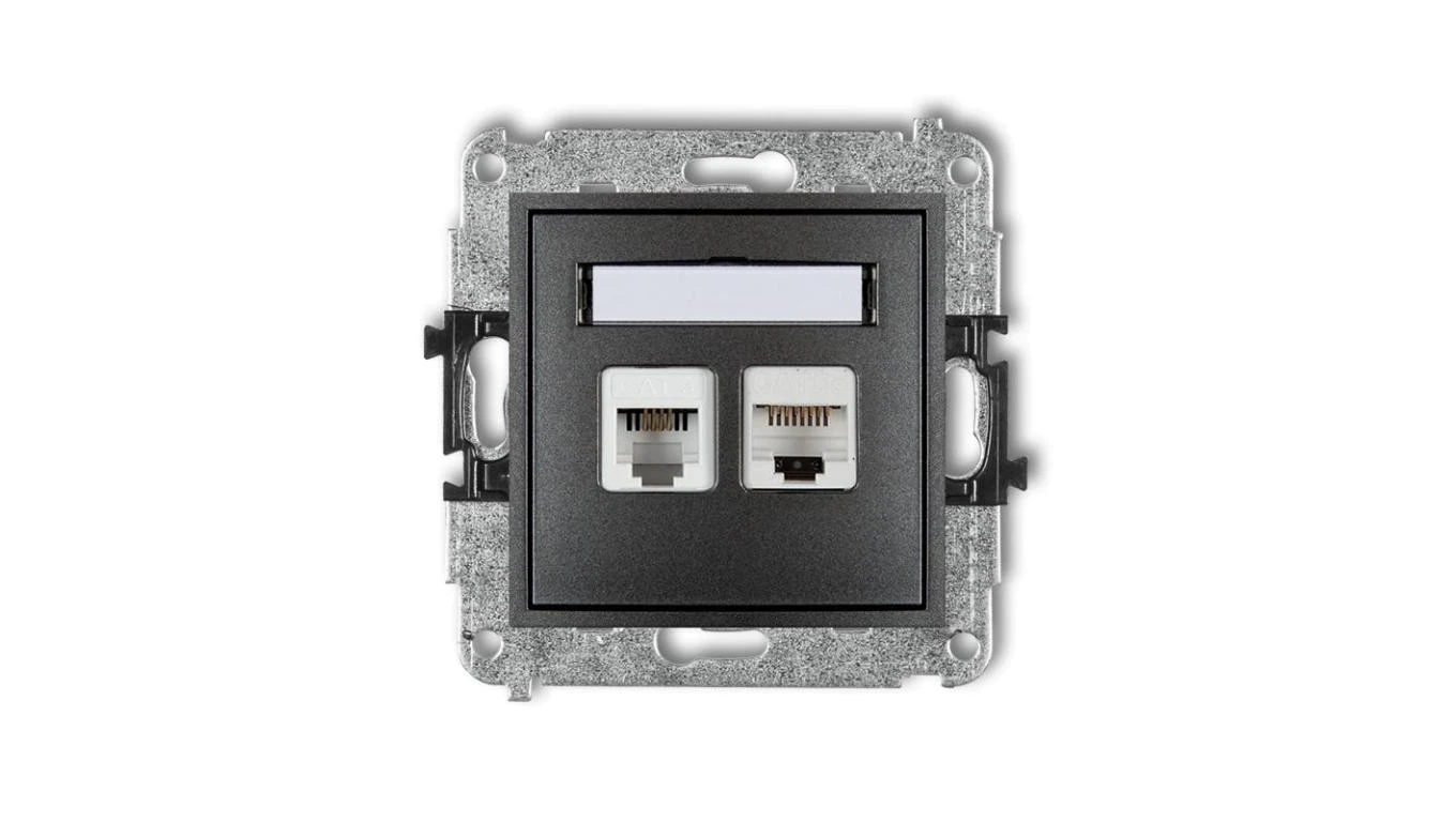 MINI Gniazdo telefoniczne RJ11 + gniazdo komputerowe RJ45 kat. 5e 8-stykowy beznarzędziowy grafitowe 11MGTK