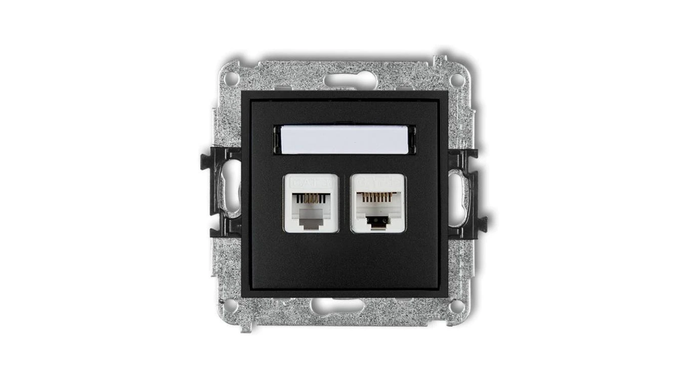 MINI Gniazdo telefoniczne RJ11 + gniazdo komputerowe RJ45 kat. 5e 8-stykowy beznarzędziowy czarny mat 12MGTK