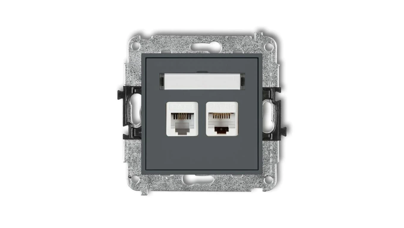 MINI Gniazdo telefoniczne RJ11 + gniazdo komputerowe RJ45 kat. 5e 8-stykowy beznarzędziowy grafitowy mat 28MGTK