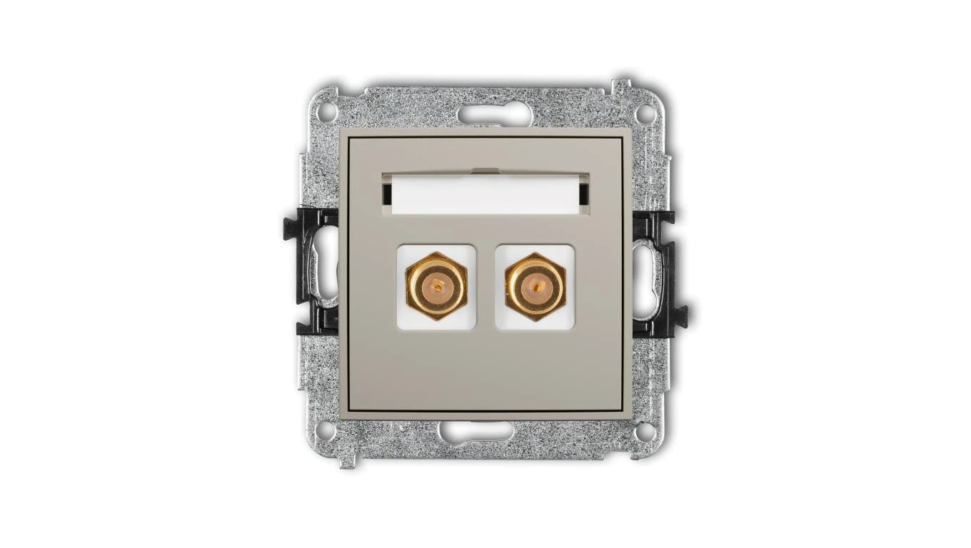 MINI Mechanizm gniazda antenowego podwójnego typu F (SAT) pozłacany taupe 60MGF-2.1