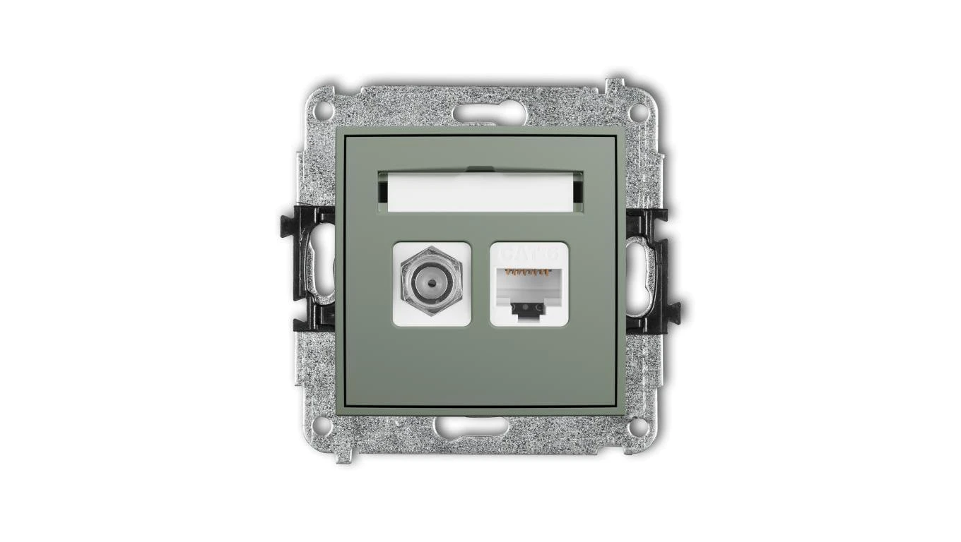 MINI Mechanizm gniazda antenowego poj. typu F (SAT) + gniazda komp. poj. 1xRJ45, kat. 6, 8-stykowy szałwiowy 61MGFK-3