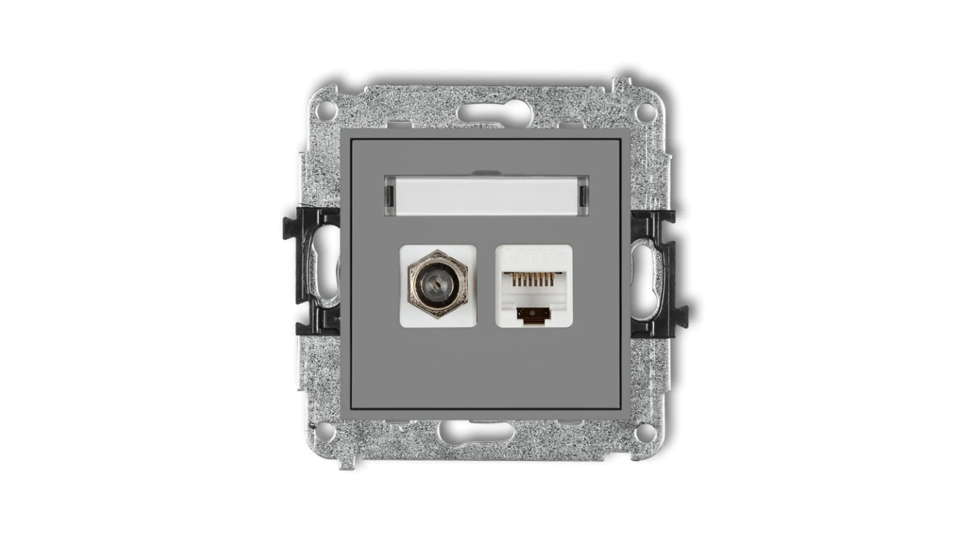 MINI Mechanizm gniazda antenowego poj. typu F (SAT) + gniazda komp. poj. 1xRJ45, kat. 6 ekranowane, 8-stykowy szary mat 27MGFK-5