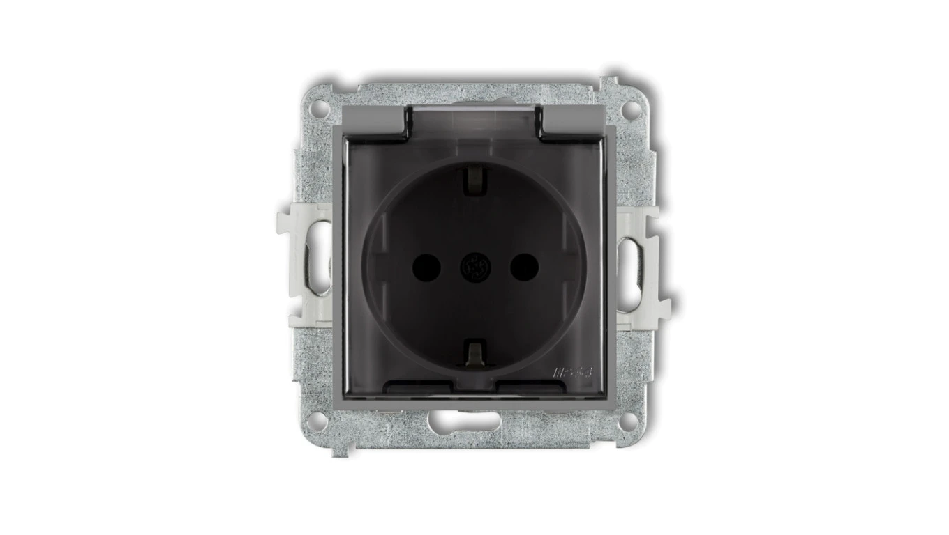 MINI Mechanizm gniazda bryzgoszczelnego z uziemieniem SCHUKO 2P+Z (klapka dymna, przesłony torów prądowych) szary mat 27MGPB-1sd