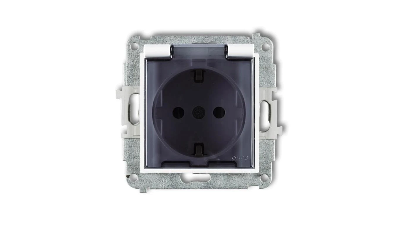 MINI Mechanizm gniazda bryzgoszczelnego z uziemieniem SCHUKO 2P+Z (klapka dymna, przesłony torów prądowych) biały mat 25MGPB-1sd