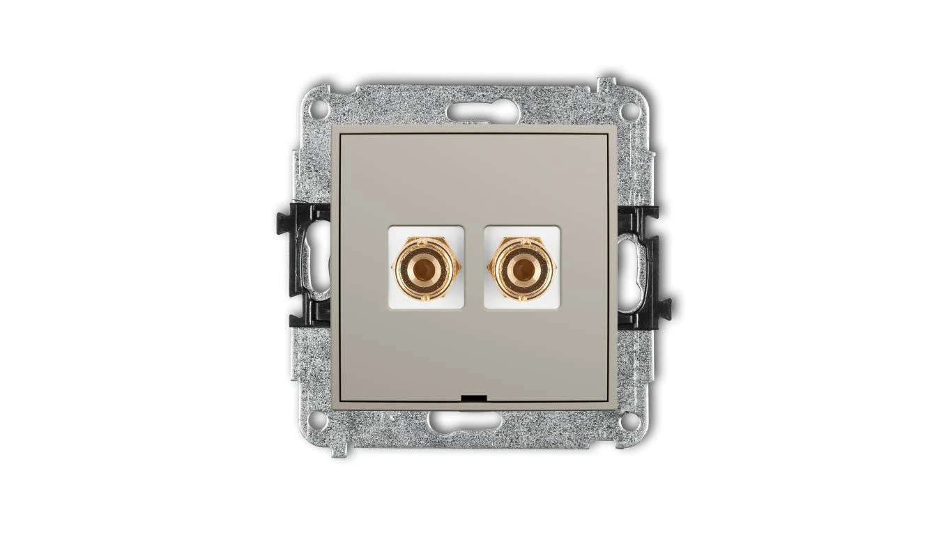 MINI Mechanizm gniazda głośnikowego poj., bez opisu (banan - czerwony i czarny, pozłacany, 4 mm2, do lutowania) taupe 60MGGBO-3