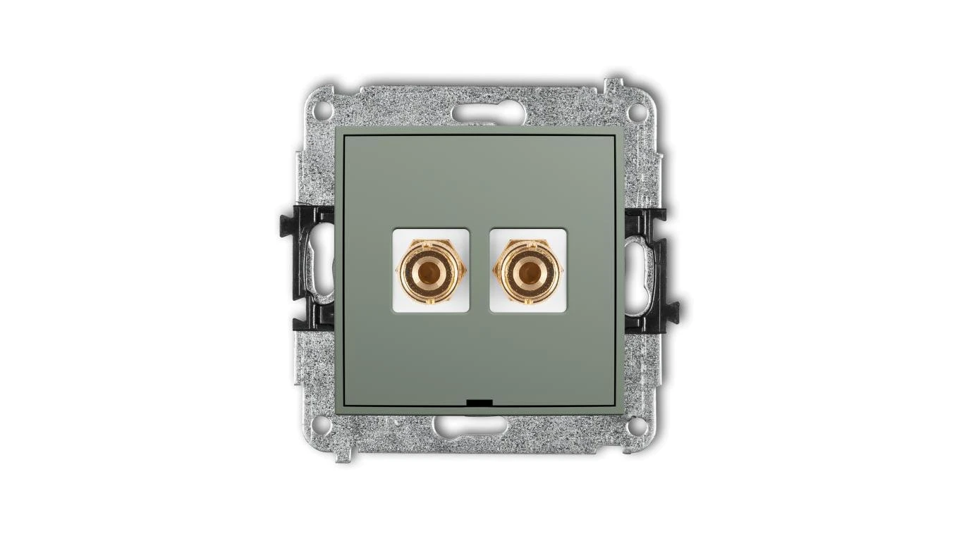 MINI Mechanizm gniazda głośnikowego poj., bez opisu (banan - czerwony i czarny, pozłacany, 4 mm2, do lut.) szałwiowy 61MGGBO-3