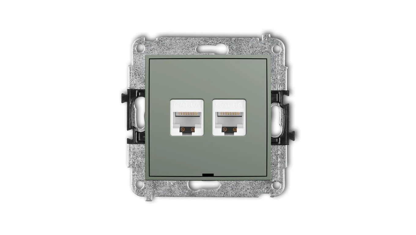 MINI Mechanizm gniazda komputerowego podwójnego 2xRJ45, kat. 6A, 8-stykowy, bez pola opisowego szałwiowy 61MGKBO-8