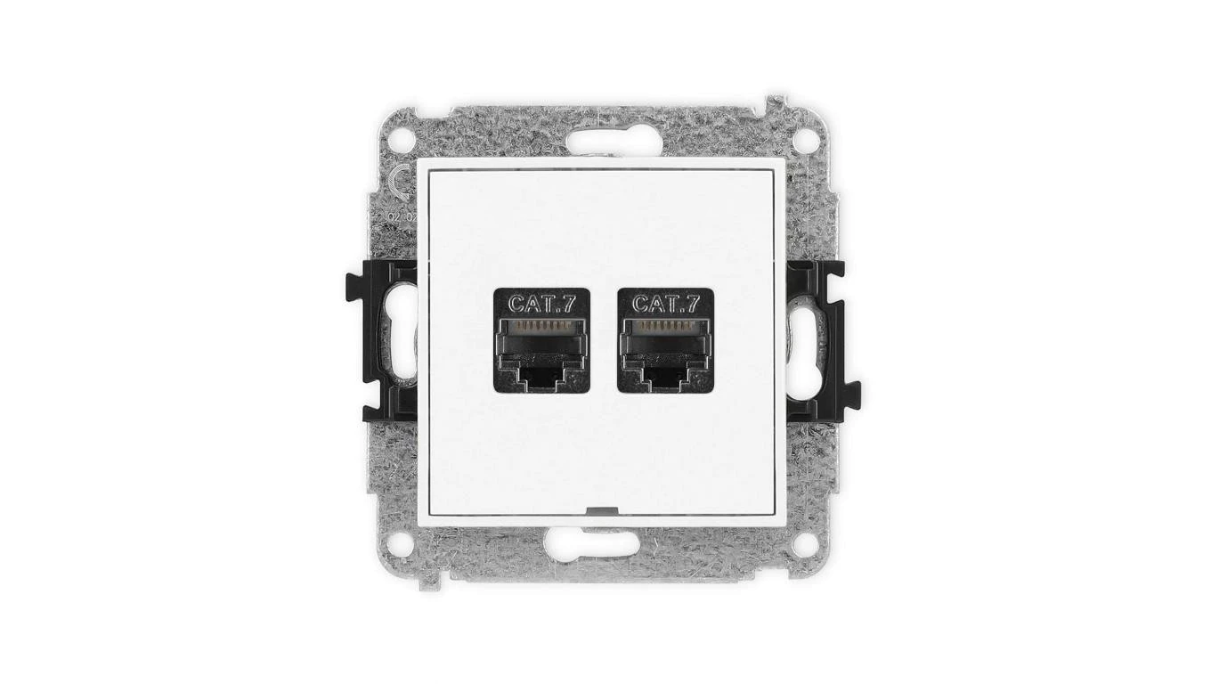 MINI Mechanizm gniazda komputerowego podwójnego 2xRJ45, kat. 7, ekranowane, 8-stykowy, bez pola opisowego biały mat 25MGKBO-10