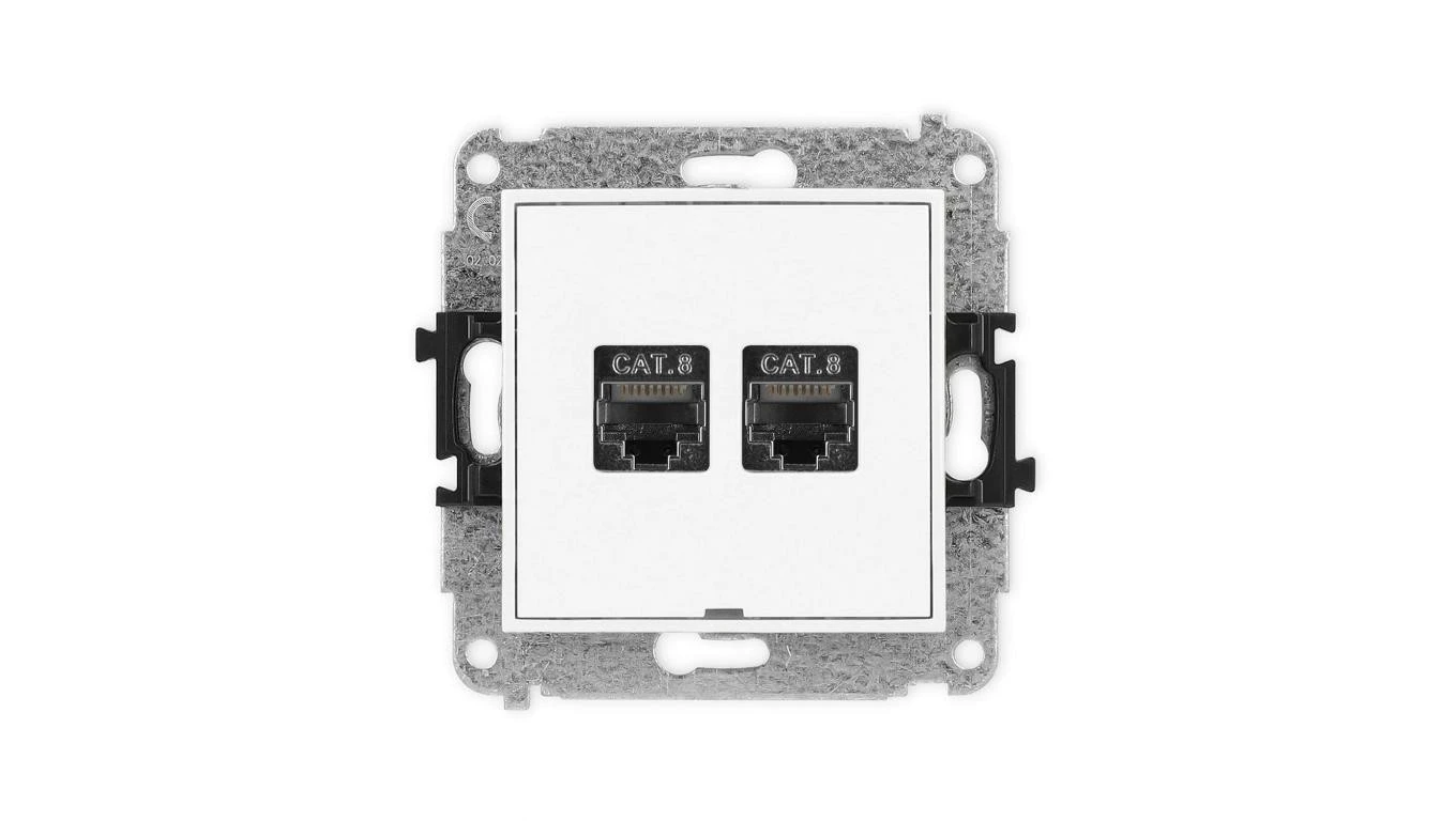 MINI Mechanizm gniazda komputerowego podwójnego 2xRJ45, kat. 8, ekranowane, 8-stykowy, bez pola opisowego biały mat 25MGKBO-12
