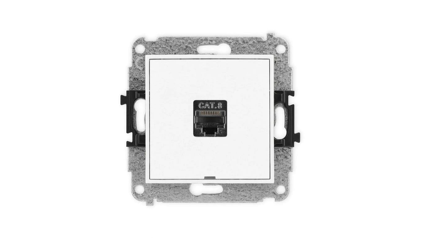 MINI Mechanizm gniazda komputerowego pojedynczego 1xRJ45, kat. 8, ekranowane, 8-stykowy, bez pola opisowego biały mat 25MGKBO-11