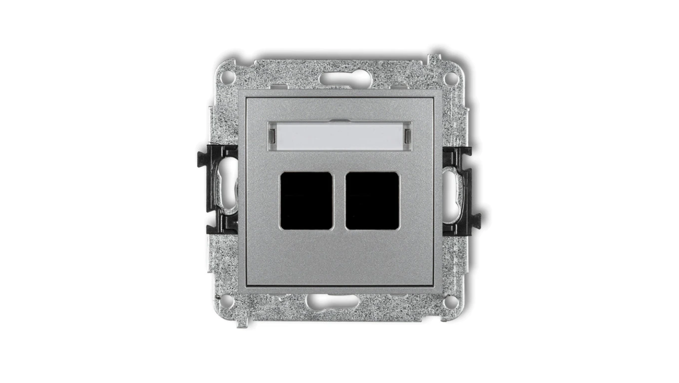 MINI Mechanizm gniazda multimedialnego podwójnego bez modułu (standard Keystone) srebrny metalik 7MGM-2P