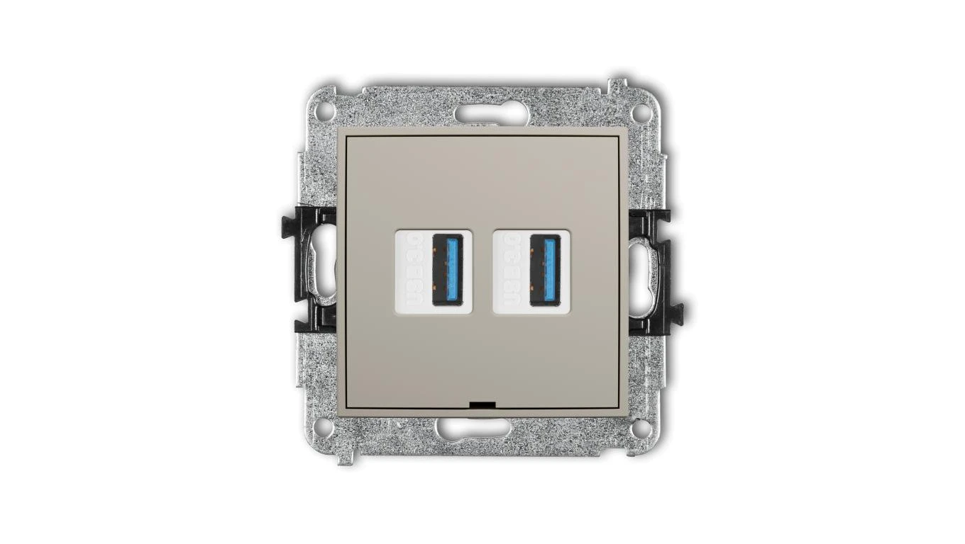 MINI Mechanizm gniazda podwójnego 2xUSB A-A 3.0, bez pola opisowego taupe 60MGUSBBO-6