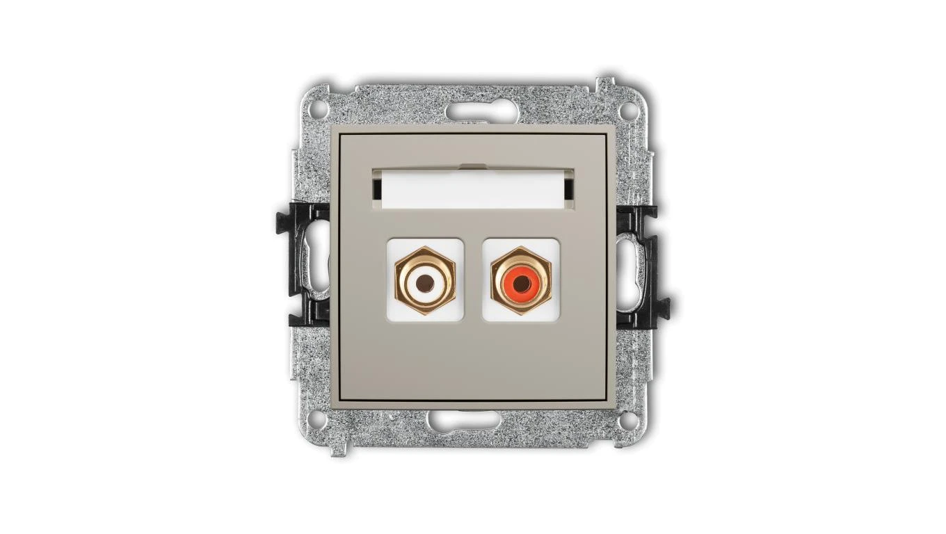 MINI Mechanizm gniazda podwójnego RCA (typu cinch - biały i czerwony, pozłacany) taupe 60MGRCA-2