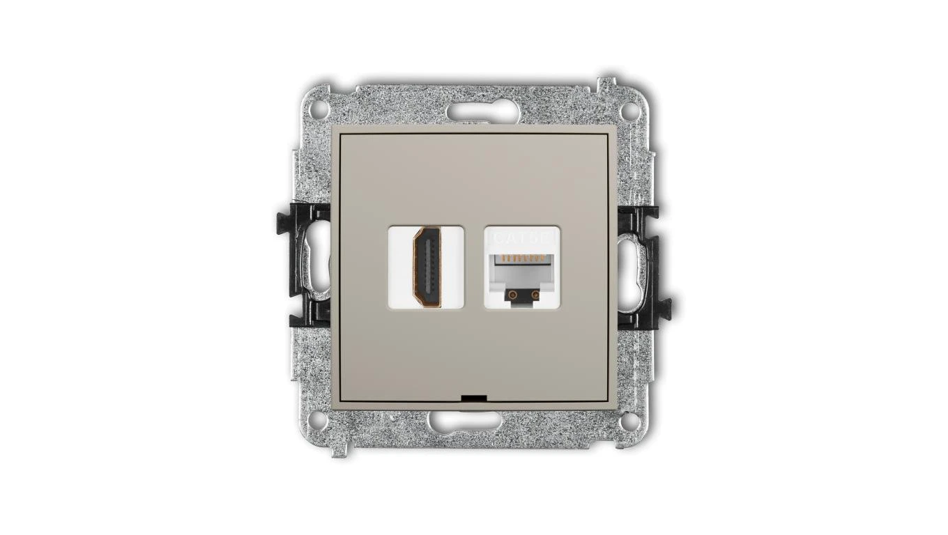 MINI Mechanizm gniazda pojedynczego HDMI 2.0, 4K + gniazda komp. poj. 1xRJ45, kat. 5e, 8-stykowy, bez opisu taupe 60MGHKBO