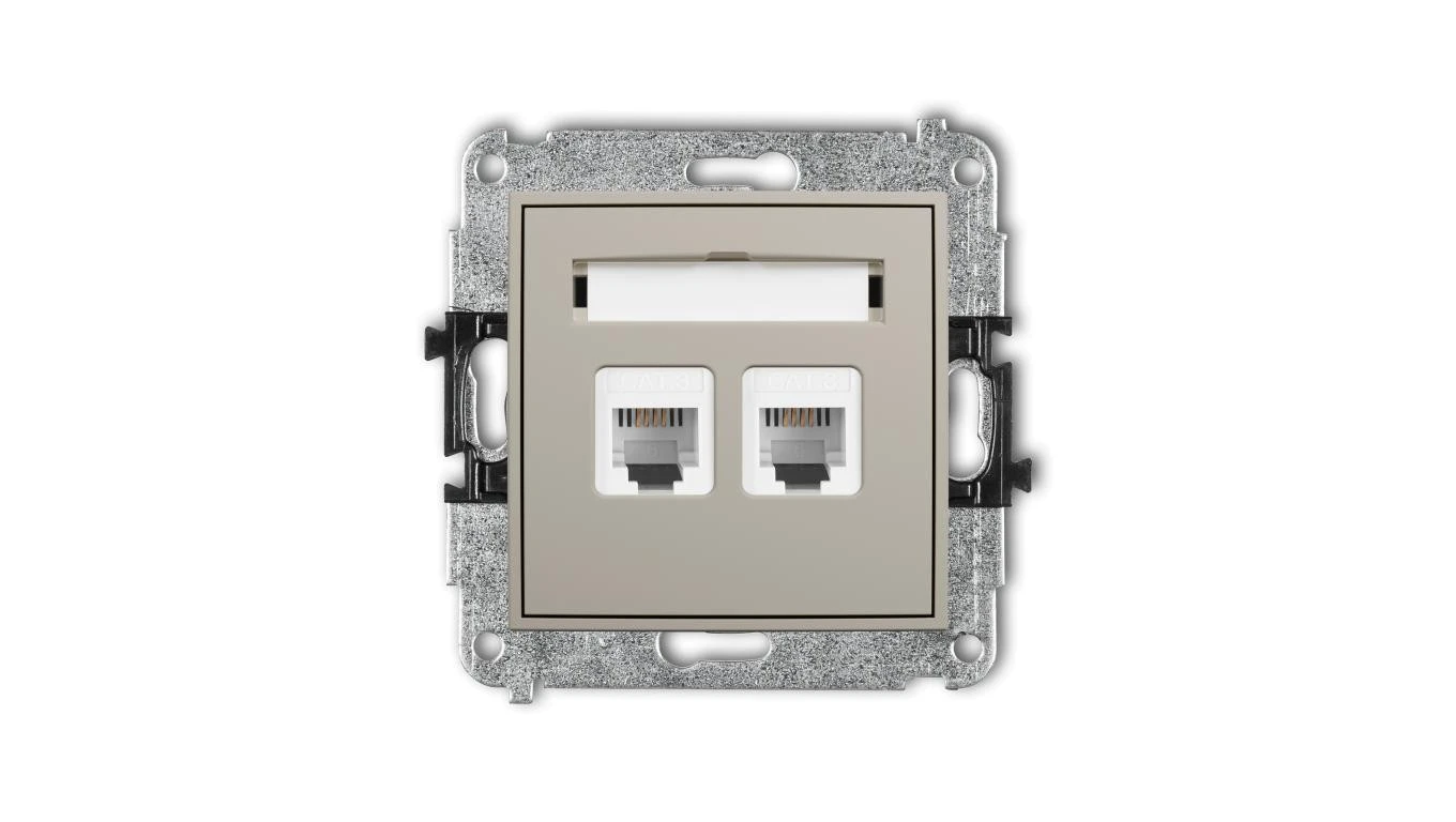 MINI Mechanizm gniazda telefonicznego podwójnego 2xRJ11, 4-stykowy, beznarzędziowe taupe 60MGT-2