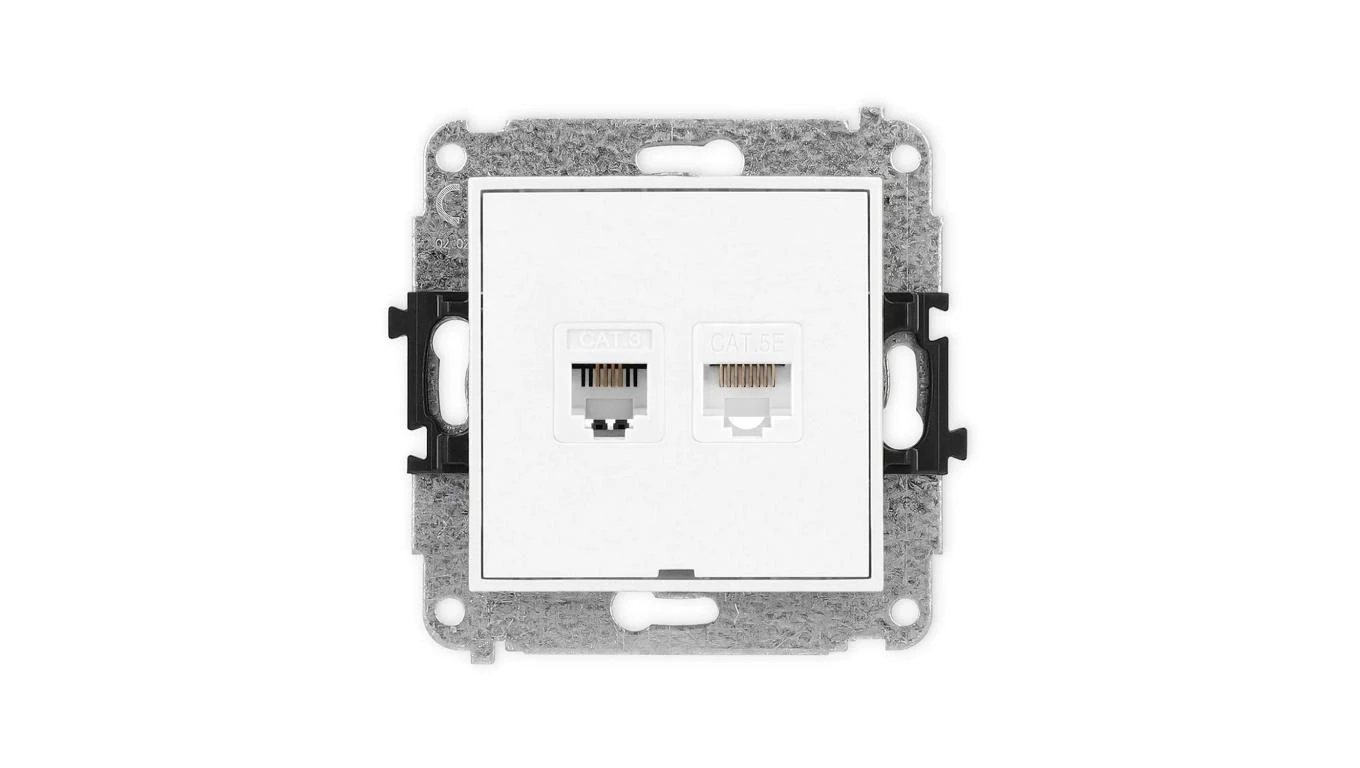 MINI Mechanizm gniazda telefonicznego pojedynczego 1xRJ11 + komputerowego pojedynczego 1xRJ45, kat. 5e, 8-stykowy, beznarzędziow