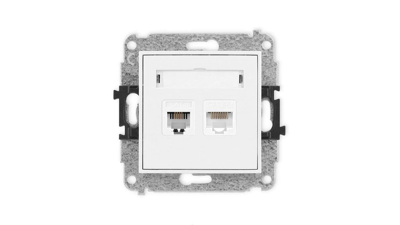 MINI Mechanizm gniazda telefonicznego pojedynczego 1xRJ11 + komputerowego pojedynczego 1xRJ45, kat. 5e, 8-stykowy, beznarzędziow