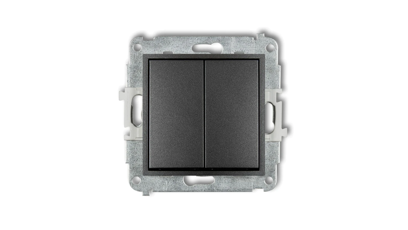 MINI Mechanizm łącznika jednobiegunowego ze schodowym (dwa klawisze bez piktogramów, wspólne zasilanie) grafitowy 11MWP-10.11