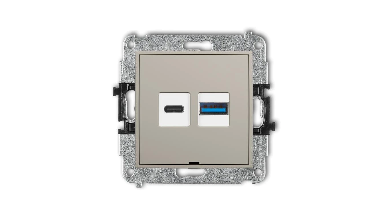 MINI Mechanizm ładowarki USB podwójnej USB C + USB A, 20W max., bez pola opisowego taupe 60MCUSBBO-8