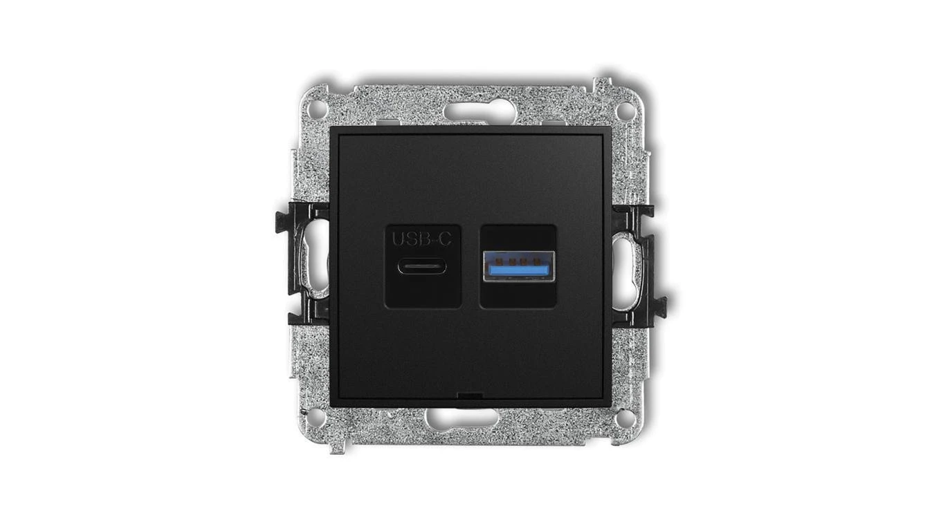 MINI Mechanizm ładowarki USB podwójnej USB C + USB A, 30W max., bez pola opisowego czarny mat 12MCUSBBO-10
