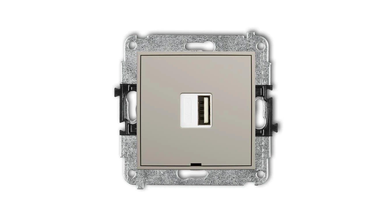MINI Mechanizm ładowarki USB pojedynczej USB A, 5W max., 5V, 1A, bez pola opisowego taupe 60MCUSBBO-1