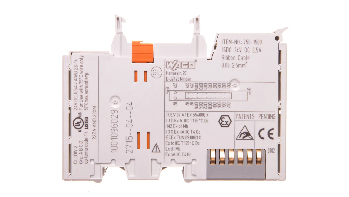 Moduł 16-kanałowy wyjść dwustanowych 24V DC 0,5A ze złączem do przewodu taśmowego 750-1500