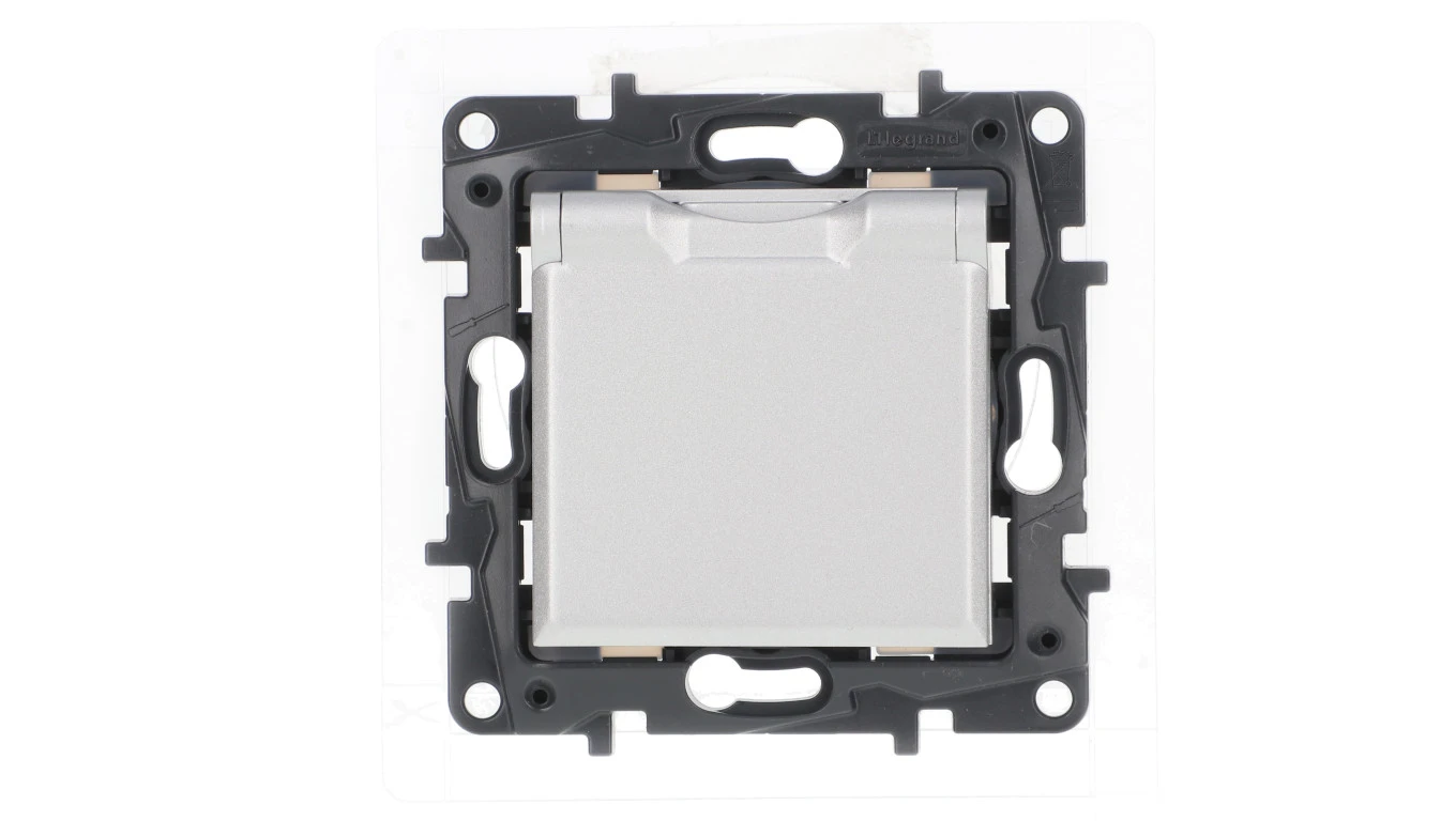 Niloe Step Gniazdo zasilające 2P+Z IP44, zaciski automatyczne, z przesłoną aluminium 863336