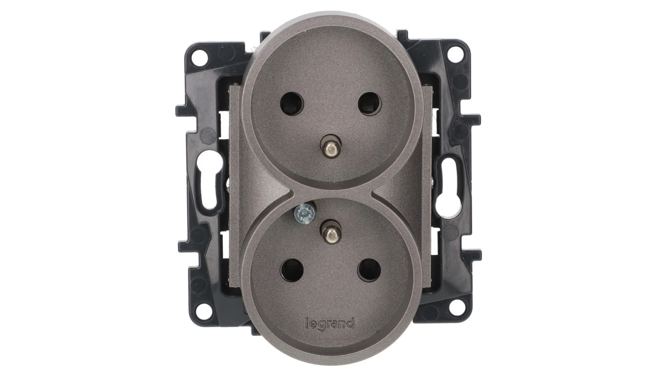 Niloe Step Gniazdo zasilające podwójne 2x2P+Z do ramek wielokrotnych, zaciski śrubowe, z przesłoną styków stalowy 863434