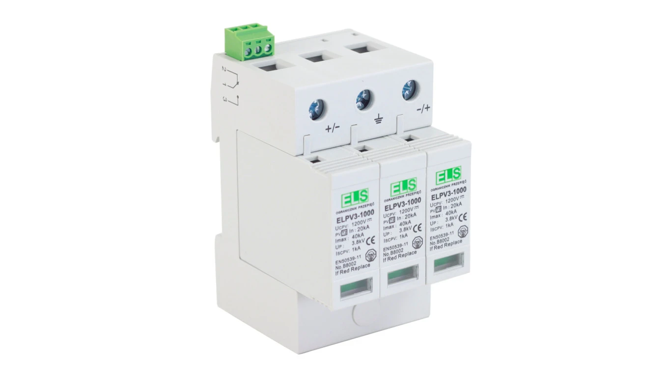 Ogranicznik przepięć Typ 2 4P 20/40kA do fotowoltaiki 1000/1200V / ELPV3-1000