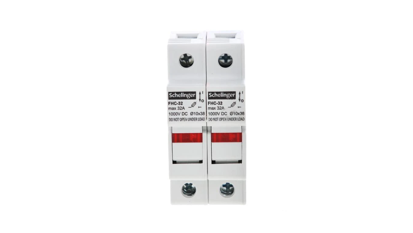 PODSTAWA BEZPIECZNIKOWA 2-POLOWA DO WKŁADEK 10x38 1000V DC MAX. 32A Z KONTROLKĄ
