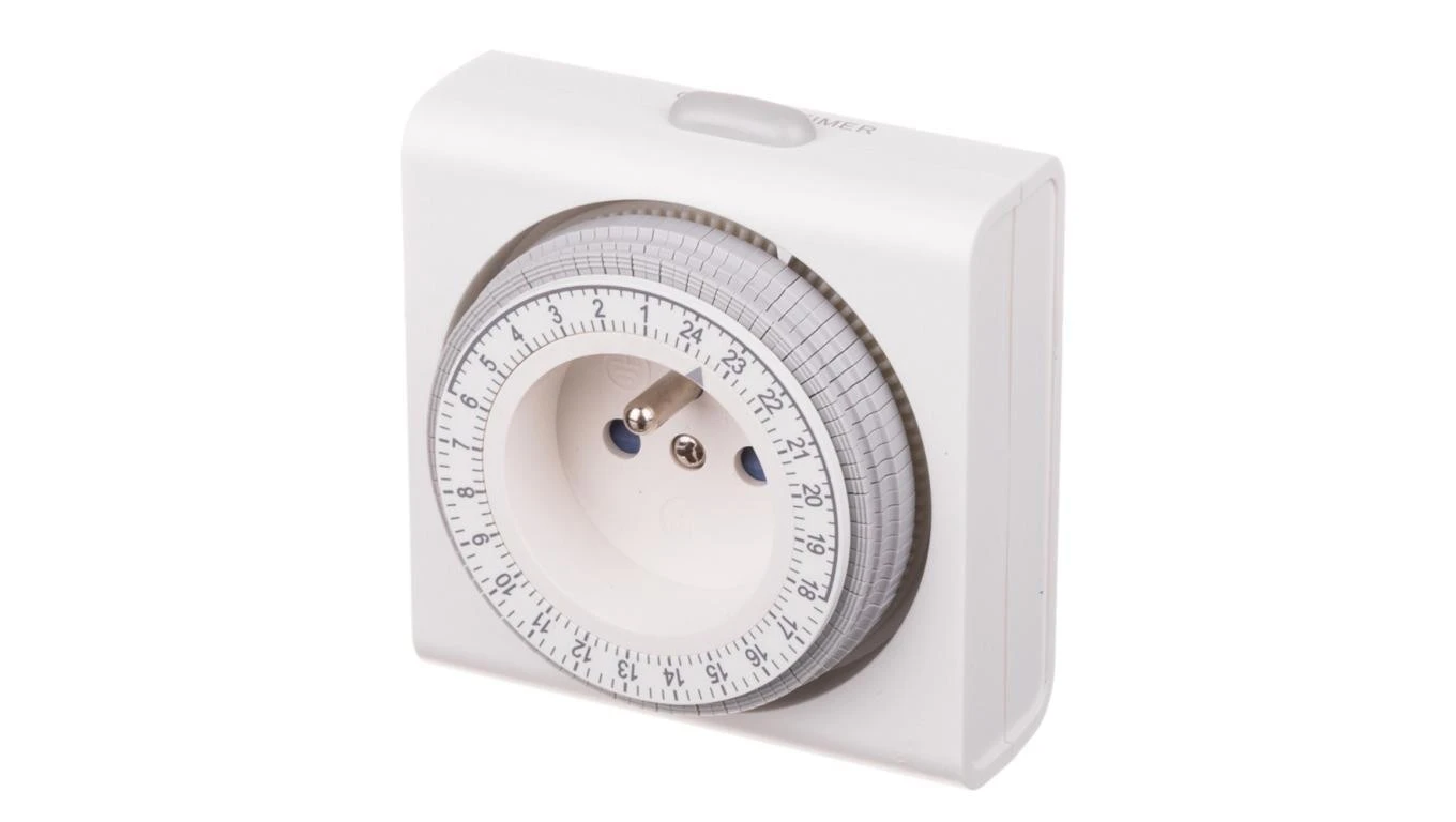 Programator czasowy mechaniczny, dzienny 24h 15-minutowy, kompaktowy, biały 67648