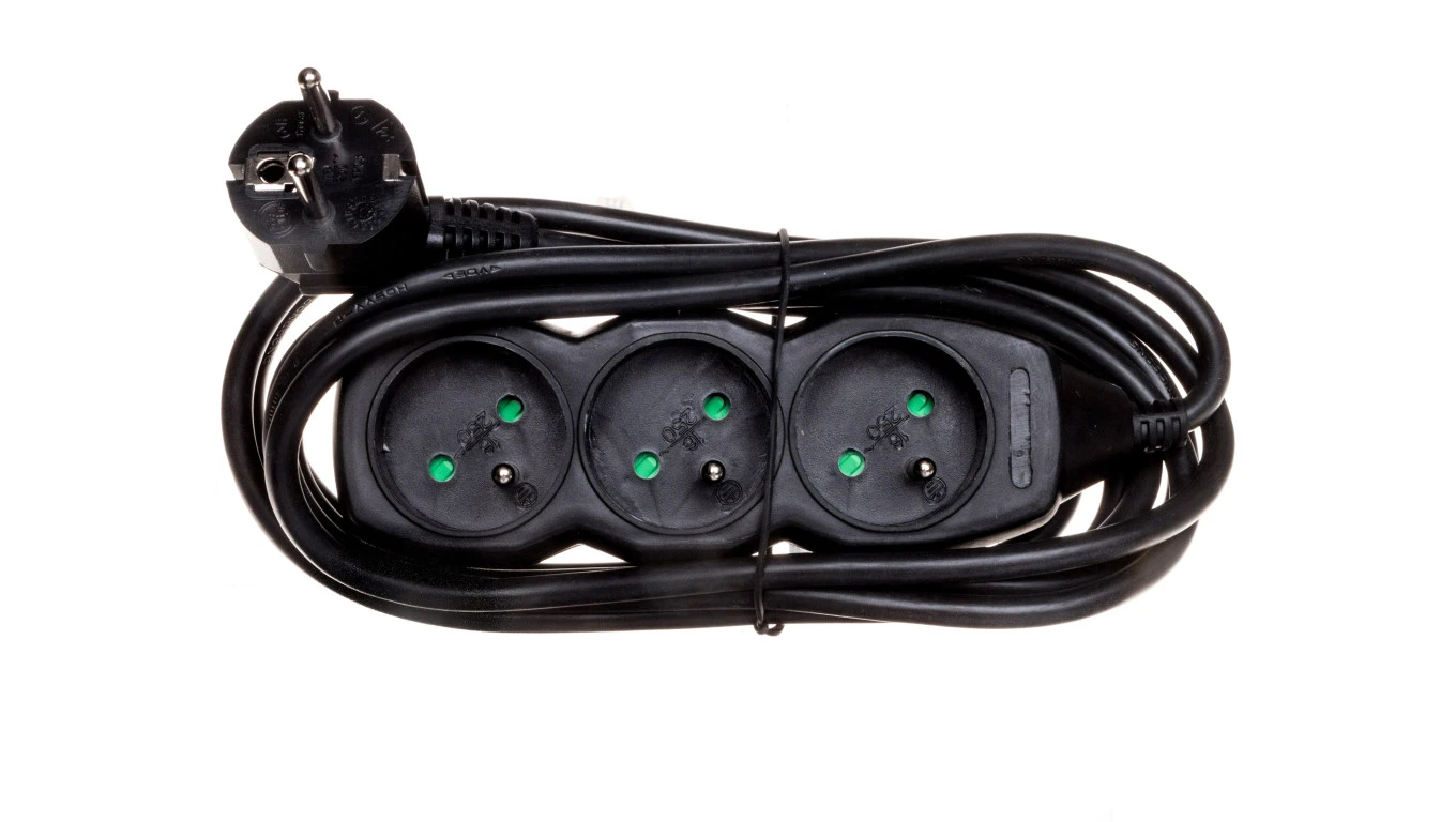 Przedłużacz 3-gniazda z/u 3m /H05VV-F 3G1/ czarny PC0313