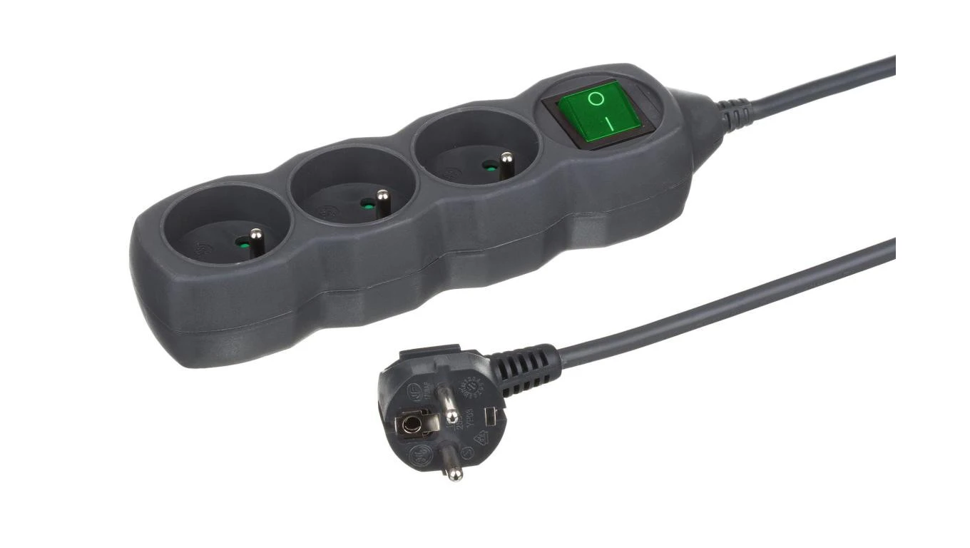 Przedłużacz 3-gniazdowy, 1,5m grafit, z wyłącznikiem, 3x1,0mm OWY 24345