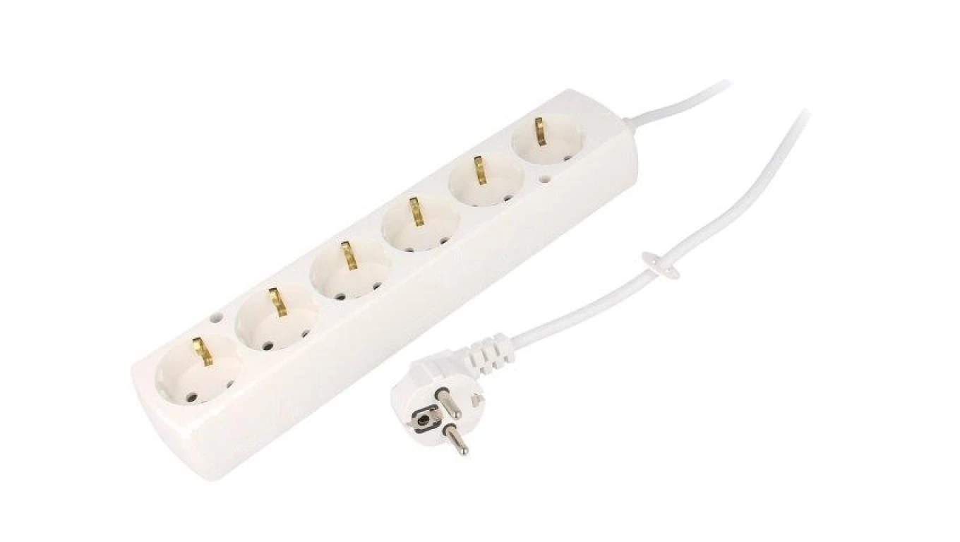 Przedłużacz 6-gniazd z/u Schuko 16A 5m /H05VV-F 3x1,5/ biały PS-670S T-974880