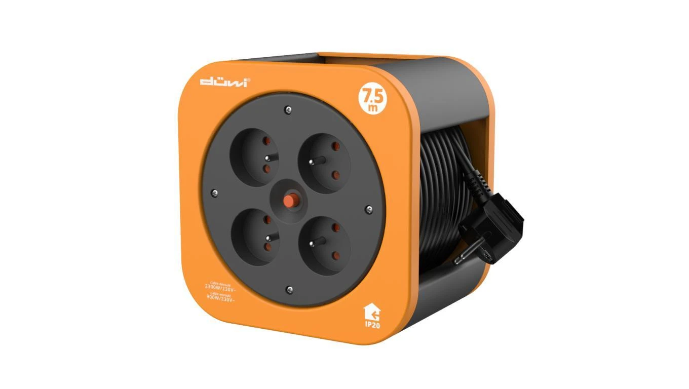 Przedłużacz bębnowy 4-gniazdowy H05VV-F 3G1,0 7,5m pomarańczowo-czarny / 24619