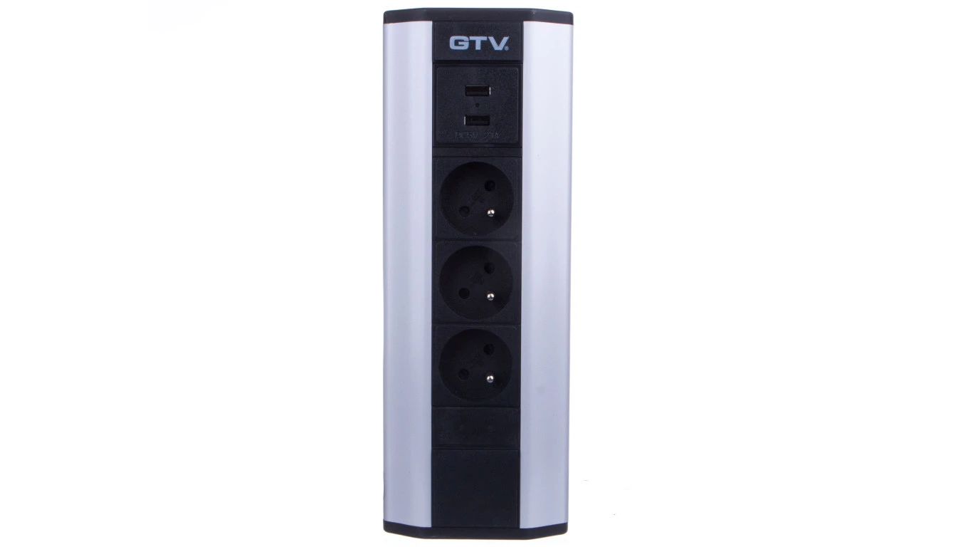 Przedłużacz biurkowy kątowy 3x gniazdo z uziemieniem, 2xUSB 2.1A 5V (srebrny)