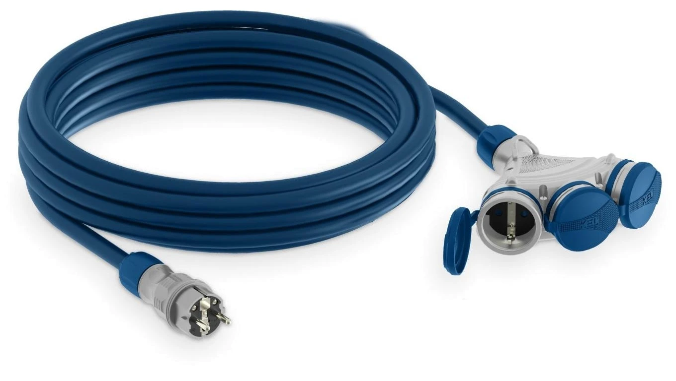 Przedłużacz budowlany 3-gniazda z/u 10m /H07BQ-F 3x2,5/ IP54 szary/niebieski W-01182