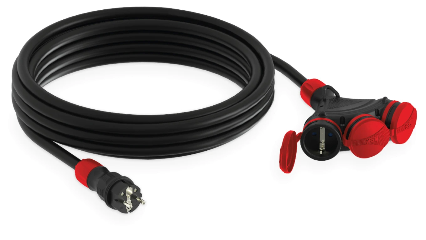 Przedłużacz budowlany 3-gniazda z/u 25m /H05RR-F 3x2,5/ IP54 czarny/czerwony W-01178