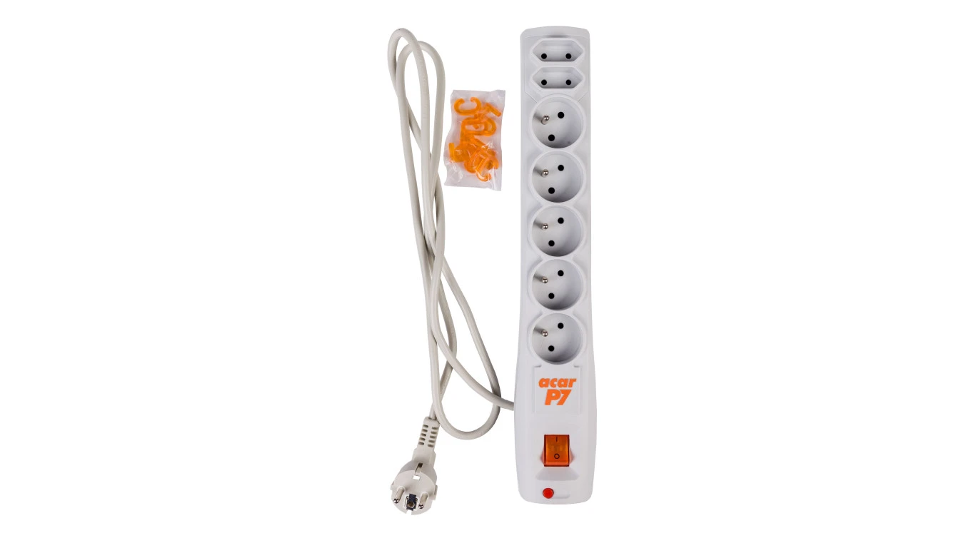 Przedłużacz przeciwprzepięciowy 7-gniazd ACAR P7 1,5m szary